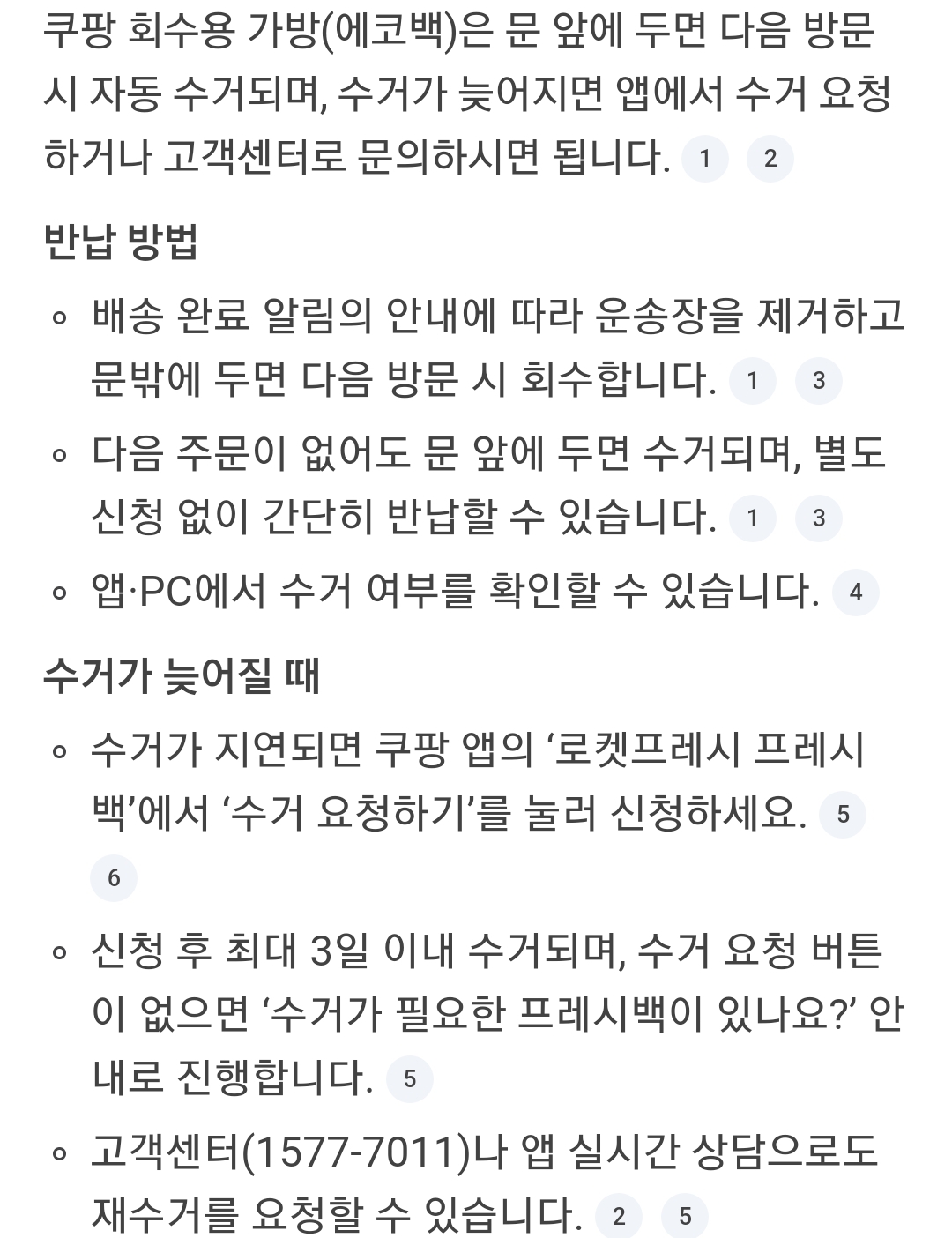 프레시백은 내용물 비우고 스티커·영수증 제거 후 접어 문 앞에 두면 됩니다.